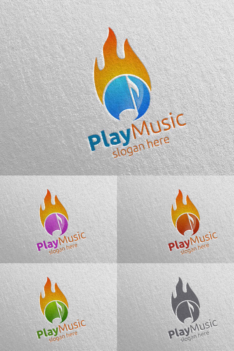 Download Шаблон логотипа "Music with Note and Fire Concept 28 Logo Template" / Music with Note and Fire Concept 28 Logo Template - Шаблон логотипа на тему графика music logo karaoke melody movie multimedia record voice singer note sound song play video volume audio vector compose fire