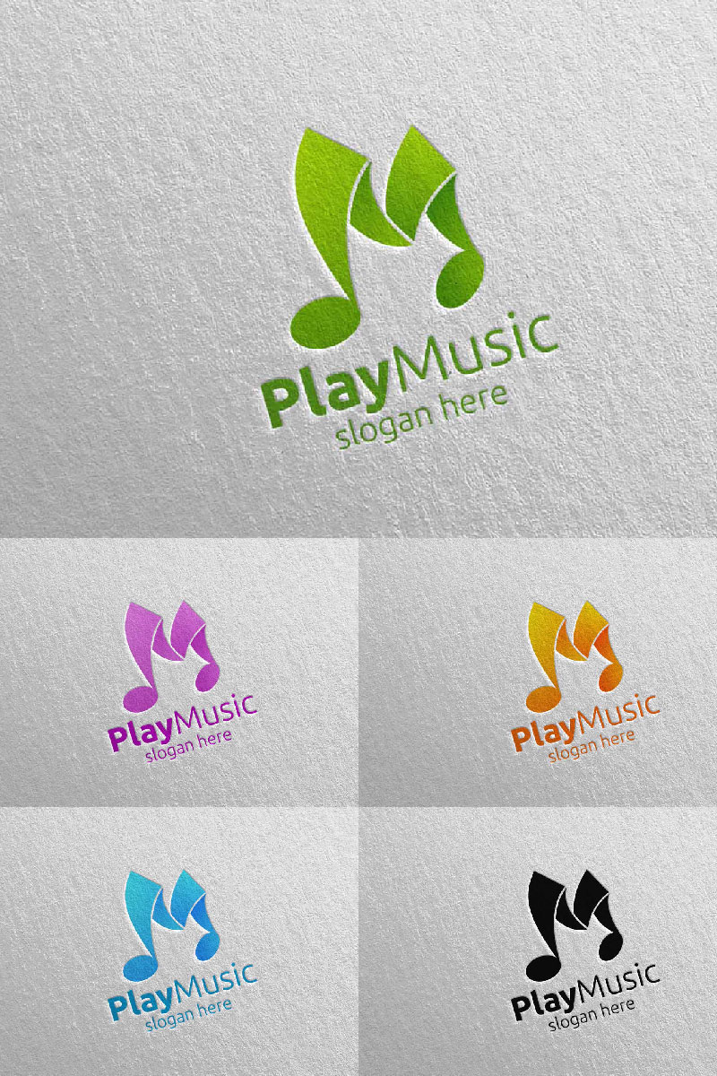 Download Шаблон логотипа "Music with Note Concept 70 Logo Template" / Music with Note Concept 70 Logo Template - Шаблон логотипа на тему графика music logo karaoke melody movie multimedia record voice singer note sound song play video volume audio vector compose disco