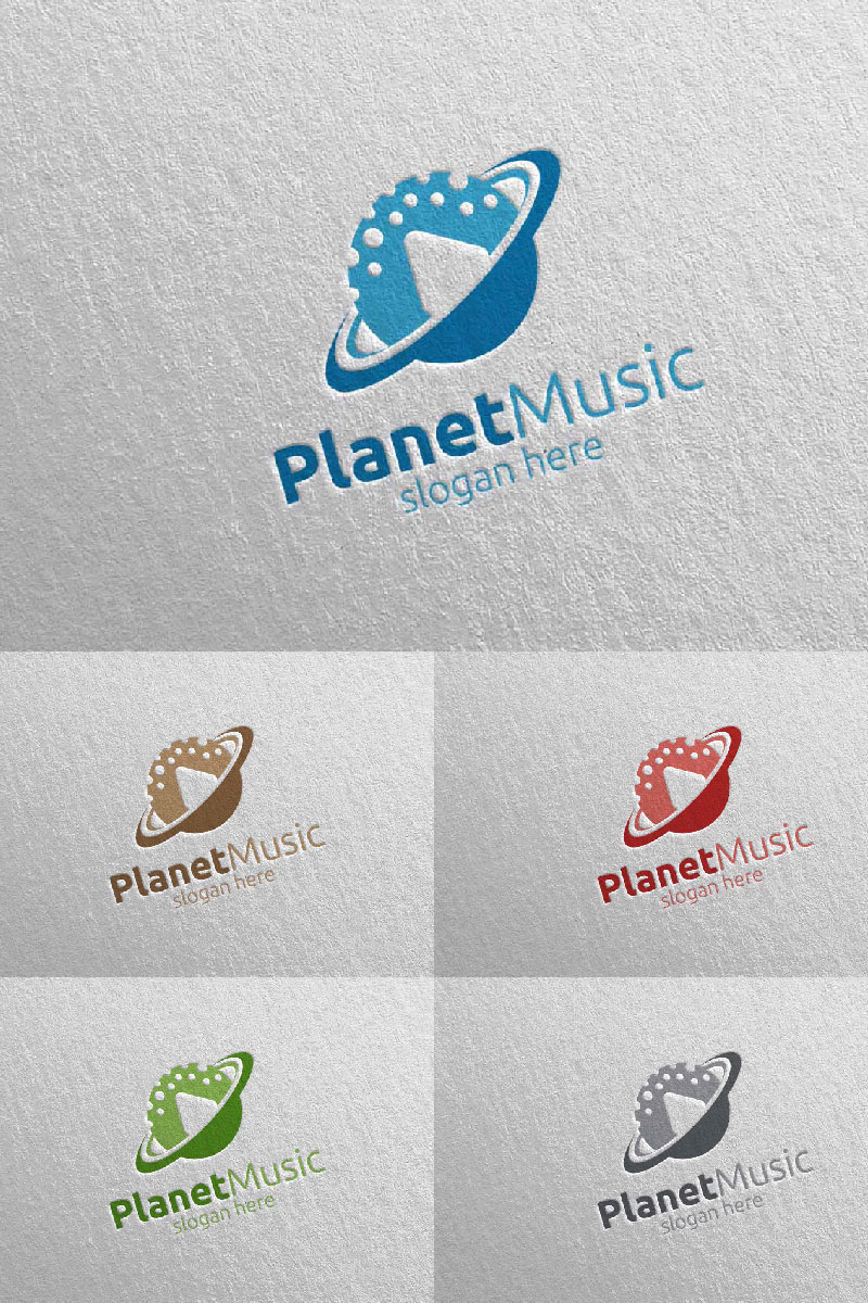 Download Шаблон логотипа "?Music with Planet and Play Concept 75? Logo Template" / ?Music with Planet and Play Concept 75? Logo Template - Шаблон логотипа на тему графика music logo karaoke melody movie multimedia record voice singer note sound song play video volume audio vector compose disco planet
