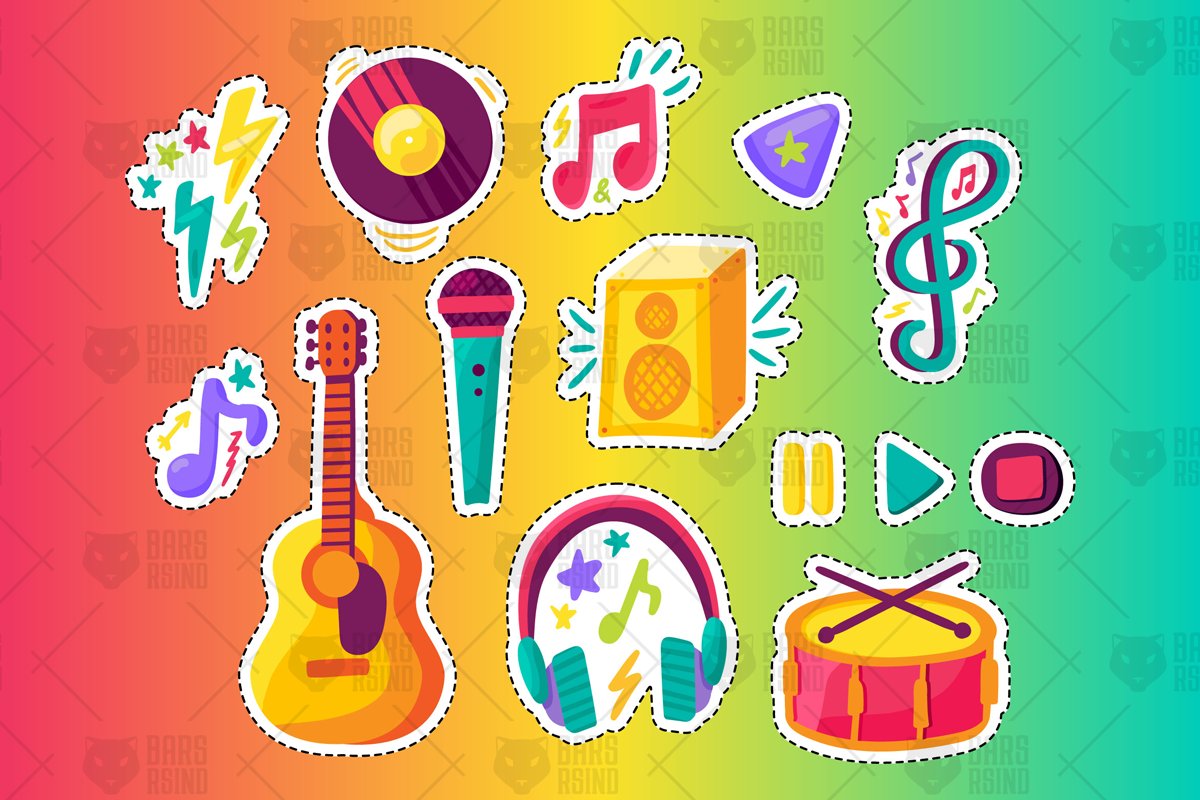 Download Фирменный стиль "Musical Party Pathes Set - Corporate Identity Template" / Musical Party Pathes Set - Corporate Identity Template - Фирменный стиль на тему графика fun,illustration,label,design,sign,retro,cute,fashion,elements,trendy,party,vector,love,fabric,collection,comic,cool,stars,style,3d,festival,music,badge,star,colorful,rock,guitar,musical,conc