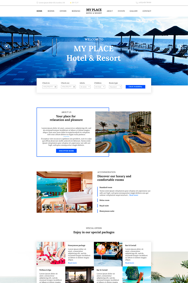 Download PSD шаблон "My Place | Hotel & Resort PSD Template" / My Place | Hotel & Resort PSD Template - PSD шаблон на тему отзывы об отелях hotel resort motel rooms travel booking clean modern professional business one-page home-page multipurpose responsive