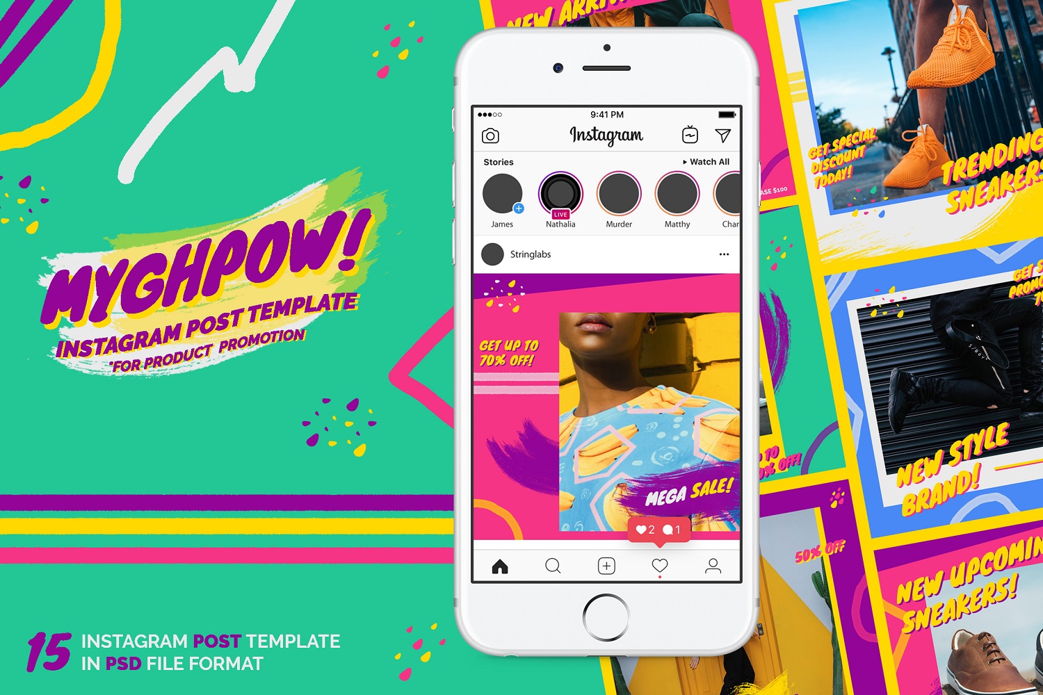 Download Шаблон для соцсетей "MYGHPOW - Instagram Post Template for Social Media" / MYGHPOW - Instagram Post Template for Social Media - Шаблон для соцсетей на тему графика creative,instagram,post,feed,fashion,stylish,funky,retro,80s,groovy,fancy,business,lifestyle,layout,unique