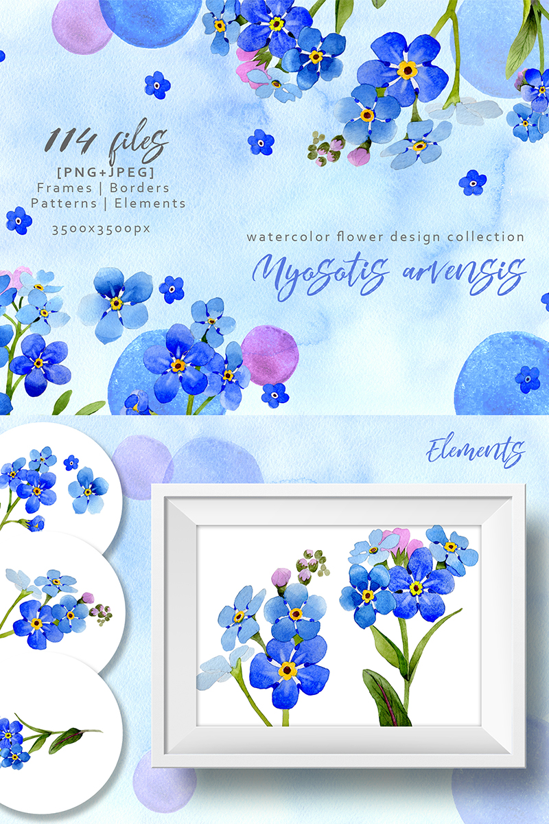 Download Иллюстрация "Myosotis Arvensis Watercolor PNG Set - Illustration" / Myosotis Arvensis Watercolor PNG Set - Illustration - Иллюстрация на тему графика watercolor illustration delicate drawing background colorful drawn paint leaf plant wildflower seasonal foliage flower sprout stem myosotis arvensis textile botanical