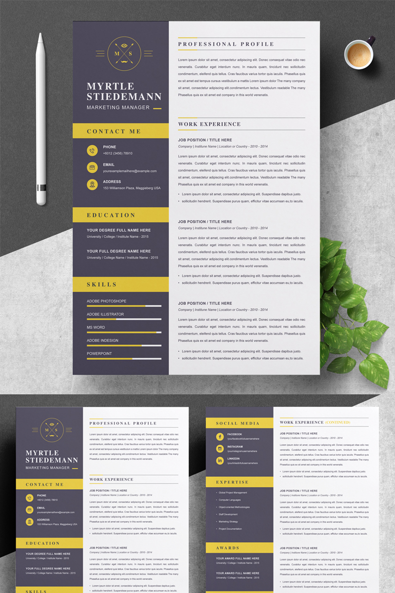 Download Резюме "Myrtle Resume Template" / Myrtle Resume Template - Резюме на тему графика resume cv wordresume clean professional resume black template design template illustrator eps mac pages microsoft word modern photoshop psd professional