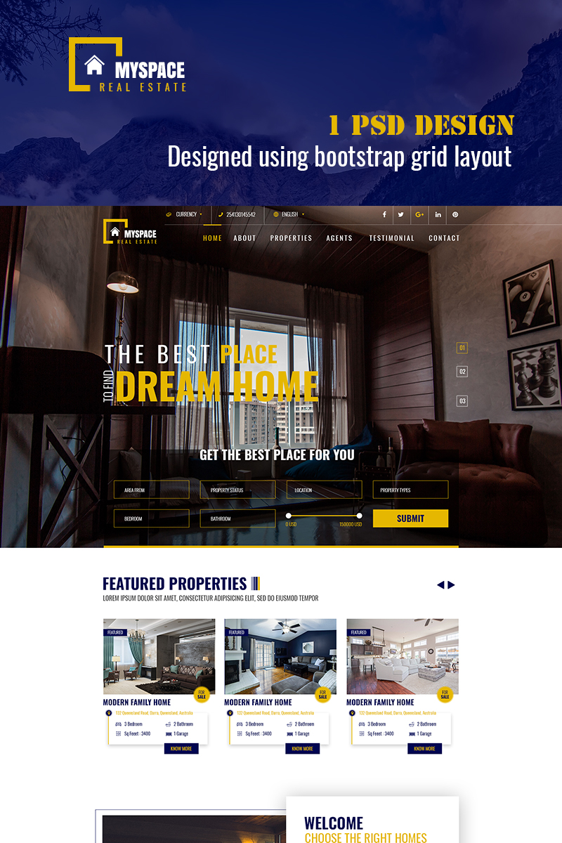 Download PSD шаблон "MySpace PSD Template" / MySpace PSD Template - PSD шаблон на тему графика construction architecture architectural design bricks skyscrapers projects company real estate agency realtors properties management house homes apartment buildings psd templates