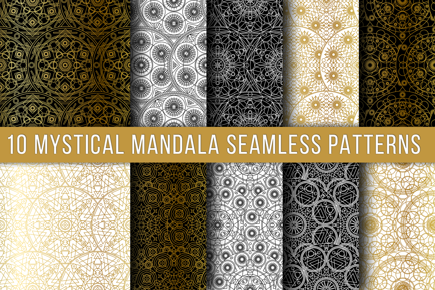 Download Pattern "Mystical Mandala Seamless Set Pattern" / Mystical Mandala Seamless Set Pattern - Pattern на тему графика paint,hand-drawn,illustration,design,book,decorative,ink,vector,thin,boho,pencil,round,art,collection,tattoo,abstract,bohemian,ornament,gold,decoration,yoga,background,black,white,drawing,sha
