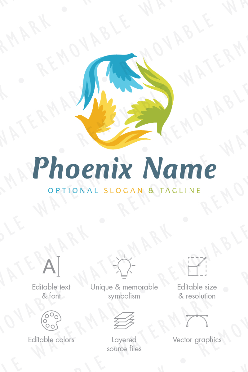 Download Шаблон логотипа "Mythic Bird Triad Logo Template" / Mythic Bird Triad Logo Template - Шаблон логотипа на тему графика cycle movement triad transformation bird feather triple synergy phoenix animation media beauty dance art logo design template energy photography quetzal
