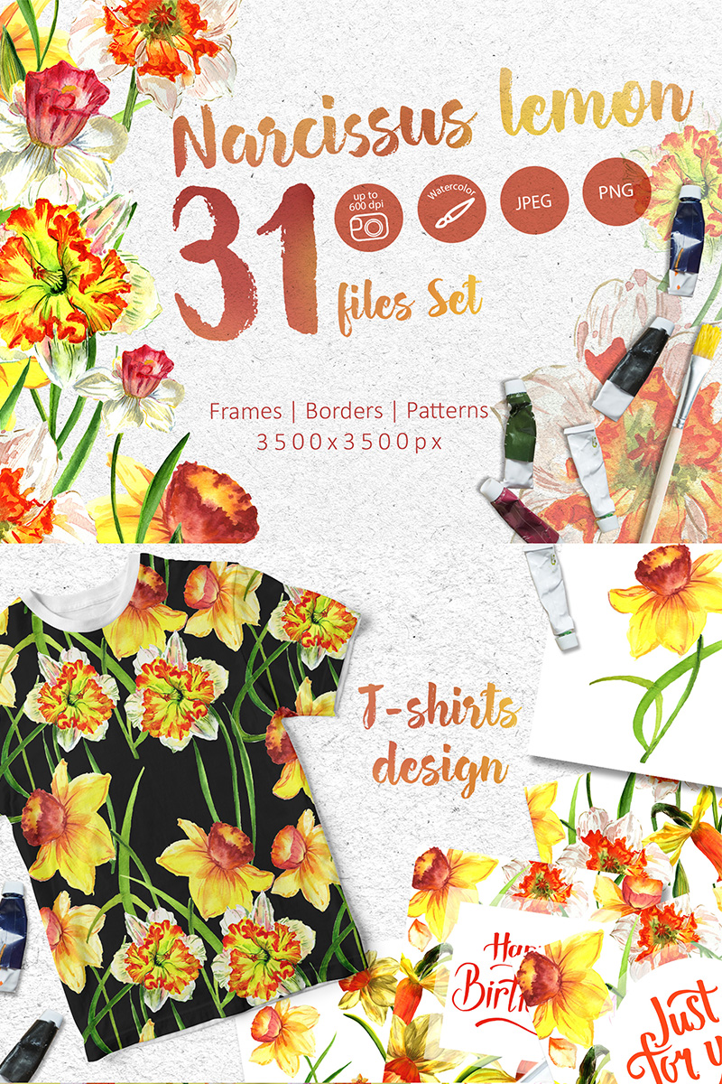 Download Иллюстрация "Narcissus Lemon PNG Watercolor Flower Set - Illustration" / Narcissus Lemon PNG Watercolor Flower Set - Illustration - Иллюстрация на тему графика watercolor narcissus illustration delicate drawing png background textile yellow drawn paint leaf plant wildflower seasonal deciduous foliage flower sprout stem