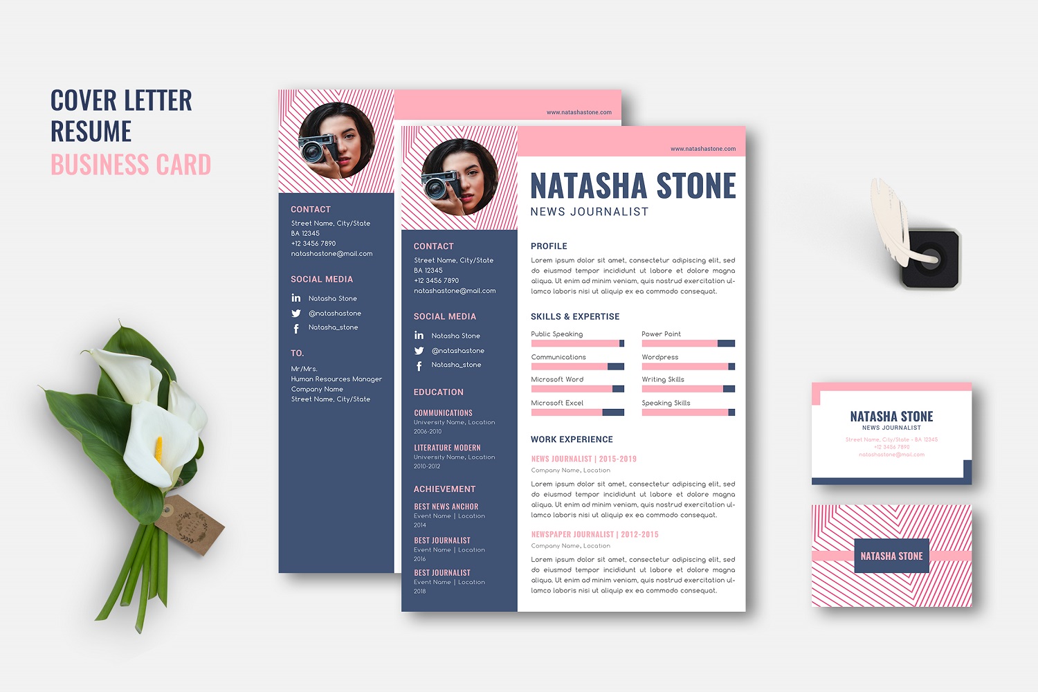 Download Резюме "Natasha - Business CV Set Resume Template" / Natasha - Business CV Set Resume Template - Резюме на тему графика business,company,corporate,agency,coverletter,letter,modern,marketing,card,clean,creative,businesscard,layout,resume