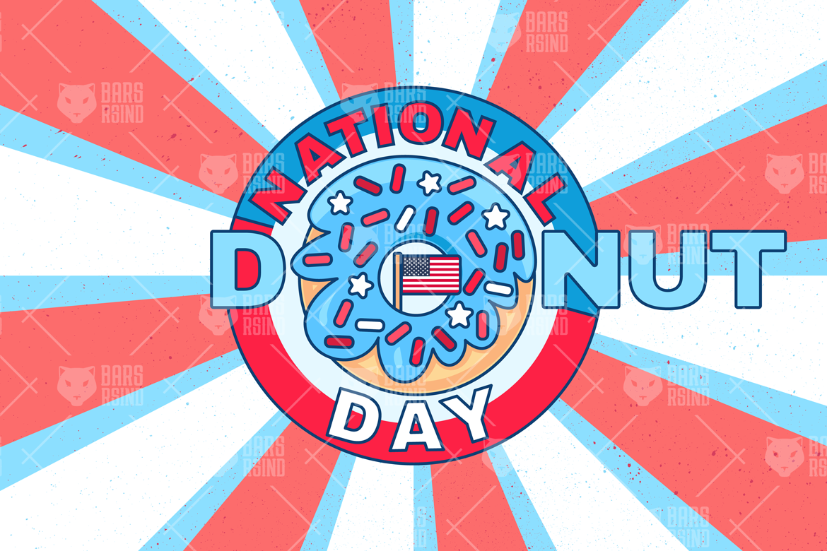 Download Иллюстрация "National Donut Day - Illustration" / National Donut Day - Illustration - Иллюстрация на тему графика card,vintage,logo,illustration,poster,design,sign,retro,cute,sweet,food,vector,round,happy,holiday,bakery,cafe,event,decoration,background,graphic,cake,icon,celebration,element,day,donut,symb