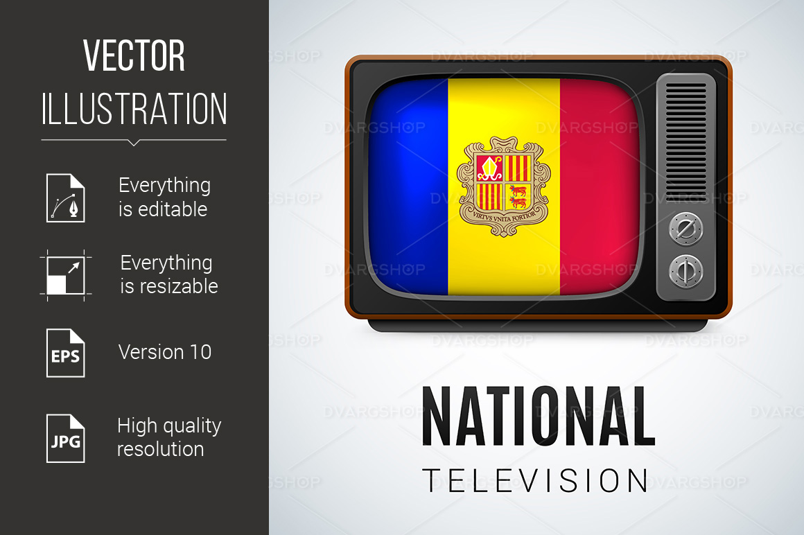 Download Vector "National Television - Vector Image" / National Television - Vector Image - Vector на тему графика national,television,flag,vintage,icon,button,symbol,patriot,application,colorful,geography,andorra,andorran,glossy,territory,tradition,nation,sign,culture