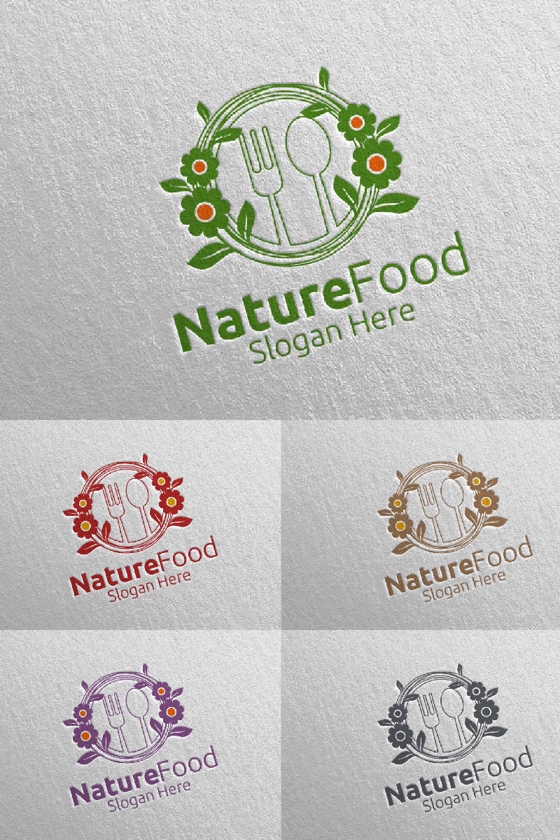 Download Шаблон логотипа "Nature Healthy Food for Restaurant or Cafe 18 Logo Template" / Nature Healthy Food for Restaurant or Cafe 18 Logo Template - Шаблон логотипа на тему графика food logo fork fresh cafe catering chef cooking restaurant knife diet eat eco green kitchen vegetarian spoon supplement nutrition nature