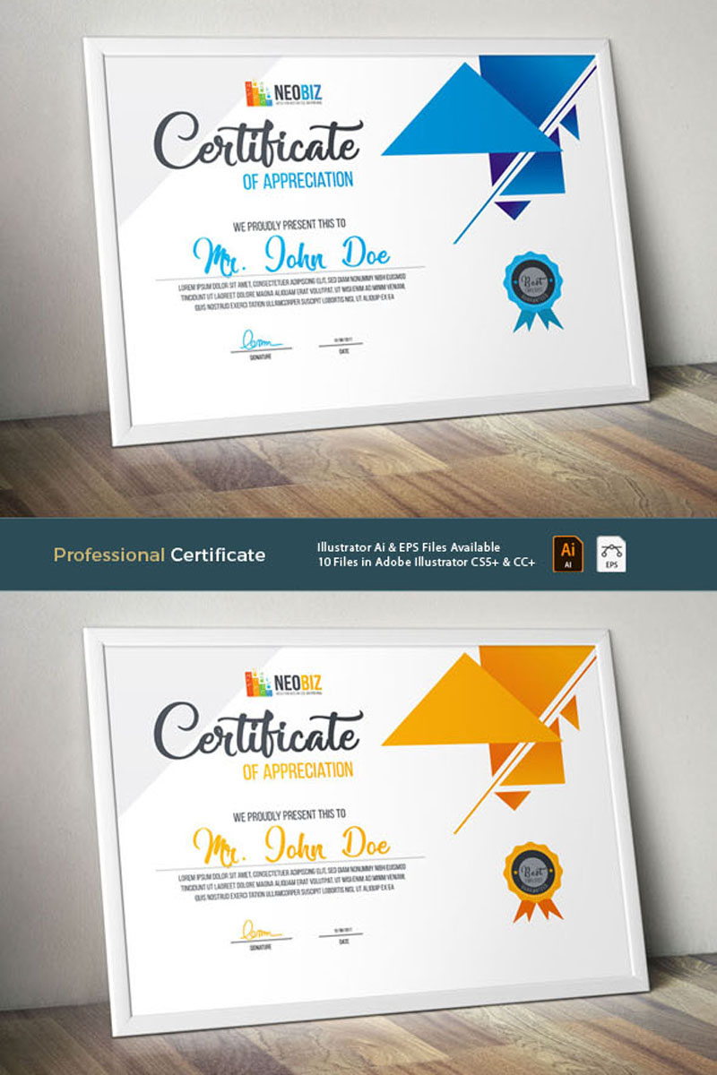 Download Шаблон сертификата "NeoBiz - Modern Certificate Certificate Template" / NeoBiz - Modern Certificate Certificate Template - Шаблон сертификата на тему графика tags a4 achievement awarded business card certificate clen cmyk color colorful cool exclusive personal use print ready purpose recognition training