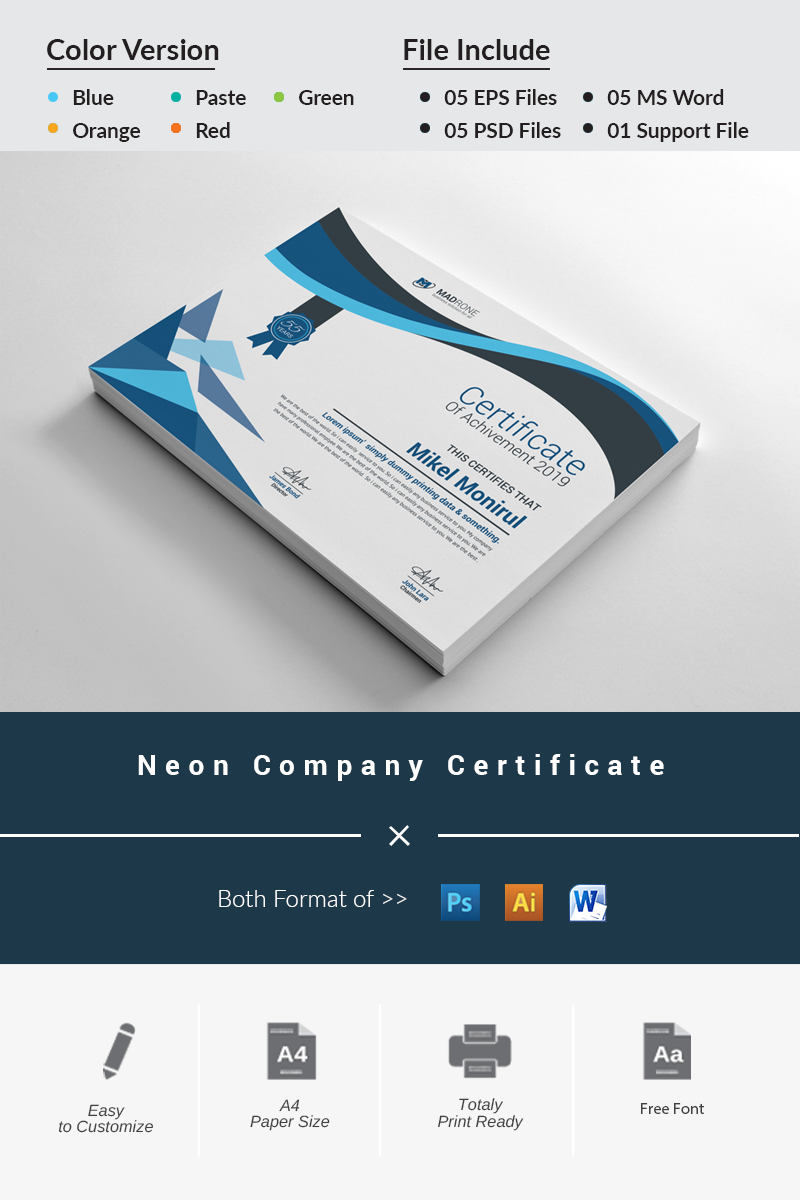 Download Шаблон сертификата "Neon Company Certificate Template" / Neon Company Certificate Template - Шаблон сертификата на тему графика achievement award background border certificate coupon diploma engraved engraving frame guilloche multipurpose pantone professional protected rosette secure security paper two