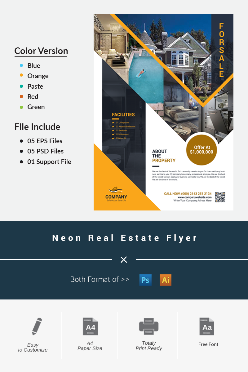 Download Фирменный стиль "Neon Real Estate Flyer - Corporate Identity Template" / Neon Real Estate Flyer - Corporate Identity Template - Фирменный стиль на тему графика psd real estate flyer corporate liflet computer internet stationery poster id kit blue hi-quality official sample business logo professional modern