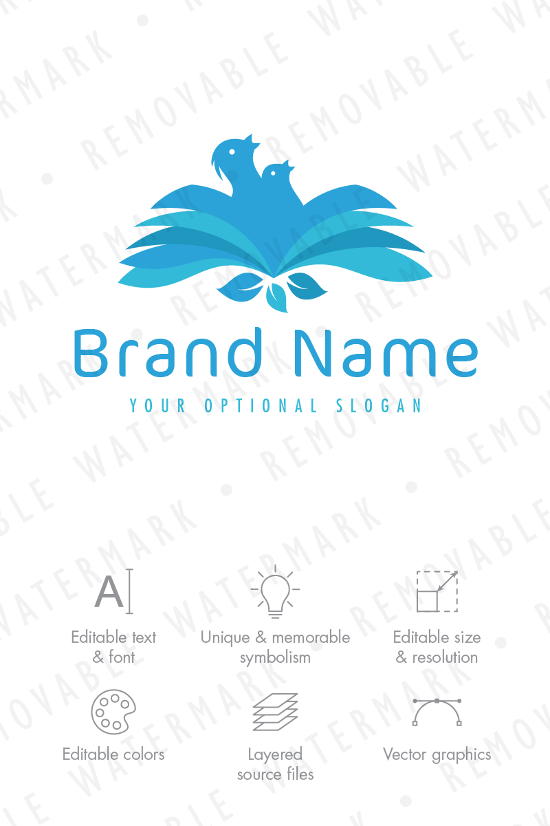 Download Шаблон логотипа "Nest of Learning Logo Template" / Nest of Learning Logo Template - Шаблон логотипа на тему графика education children bird book nest school leaf knowledge wisdom learning publishing care charity logo design template hunger bookstore library church