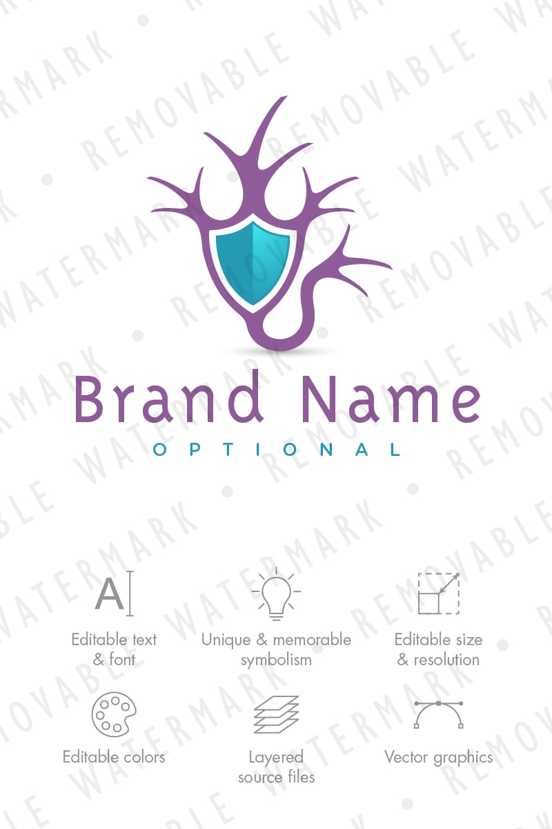 Download Шаблон логотипа "Neural Protection Logo Template" / Neural Protection Logo Template - Шаблон логотипа на тему графика security neuron brain shield defense protection network connection intelligence control innovation data technology research logo design template neural information medical