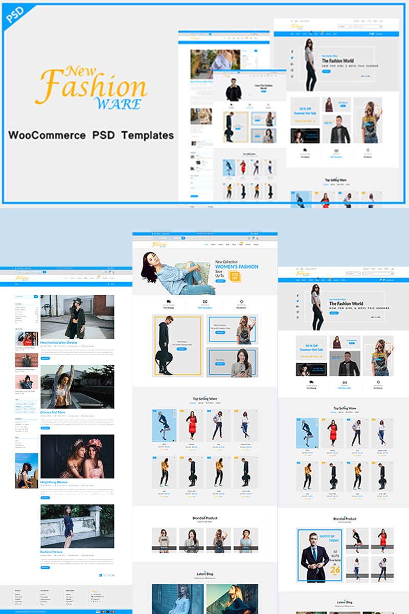 Download PSD шаблон "New Fashion Ware PSD Template" / New Fashion Ware PSD Template - PSD шаблон на тему магазин футболок creative minimal design modern ecommerce woocommerce shop blog psd template sell product ratina wordpress wp