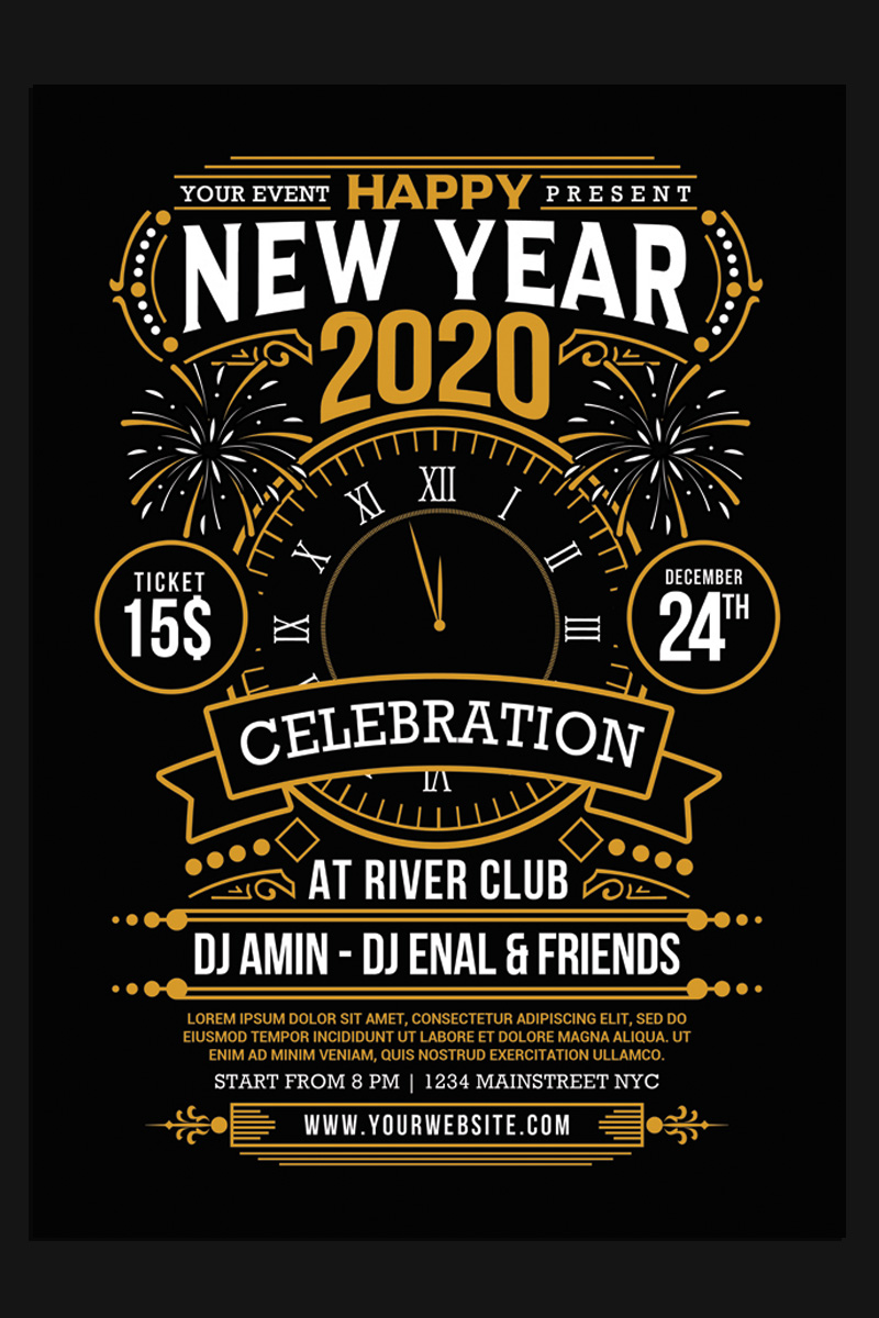 Download Фирменный стиль "New Year 2020 Party Celebration - Corporate Identity Template" / New Year 2020 Party Celebration - Corporate Identity Template - Фирменный стиль на тему графика 2020 nye party black celebration champagne christmas flyer elegant gold holiday invitation new year bash new year's eve years eve