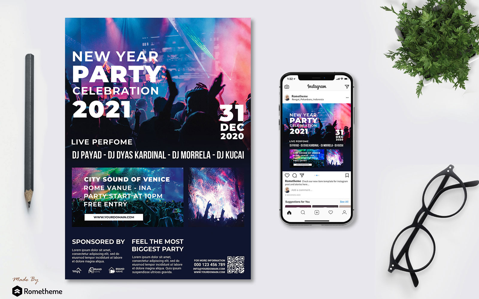 Download Фирменный стиль "New Year Party vol.02 - Flyer TY - Corporate Identity Template" / New Year Party vol.02 - Flyer TY - Corporate Identity Template - Фирменный стиль на тему графика newyear,2021,celebrate,event,music,party,promotion,banner,print,design