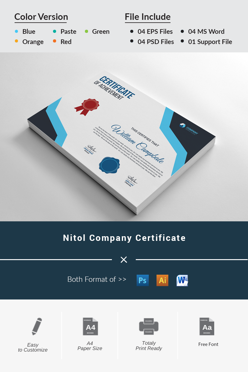 Download Шаблон сертификата "Nitol Company Certificate Template" / Nitol Company Certificate Template - Шаблон сертификата на тему графика achievement,award,background,border,certificate,coupon,diploma,engraved,engraving,frame,guilloche,multipurpose,pantone,professional,protected,rosette,secure,security,paper,two