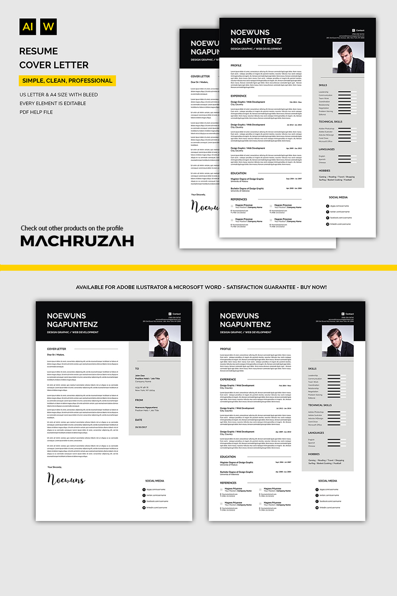 Download Резюме "Noewuns - Cover Letter Resume Template" / Noewuns - Cover Letter Resume Template - Резюме на тему графика resume template cv coverletter microsoftword creative design clean professional curriculumvitae modern simple word job