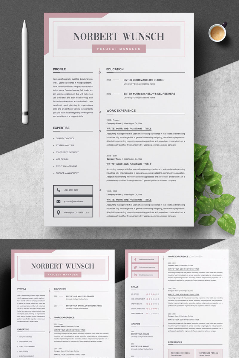 Download Резюме "Norbert Wunsch Resume Template" / Norbert Wunsch Resume Template - Резюме на тему графика cover letter resume instant download for mac cv design template infographic minimal swiss clean creative photo photoshop psd word job