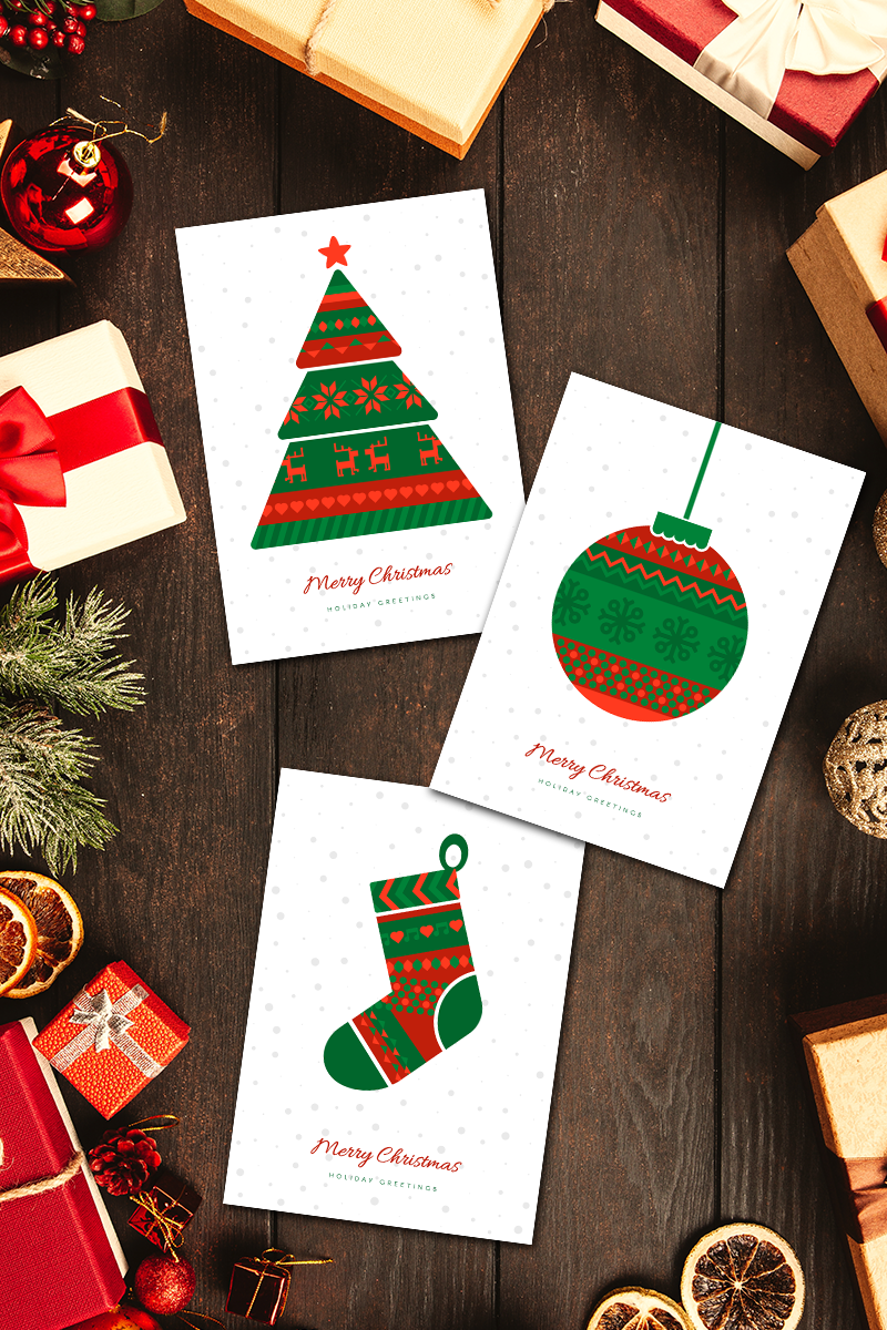 Download Иллюстрация "Norwegian Christmas Greeting Cards Set - Illustration" / Norwegian Christmas Greeting Cards Set - Illustration - Иллюстрация на тему графика merry christmas xmas happy new year norwegian deer ball sock fir greeting tree winter holiday snow template card scandinavian vector