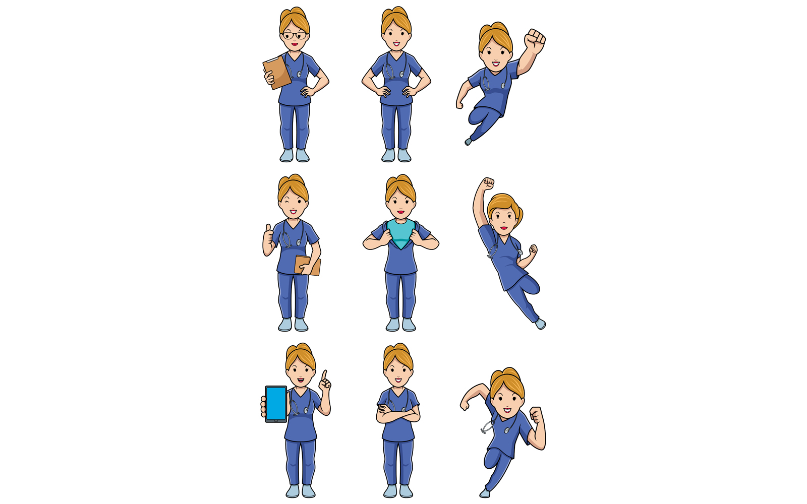 Download Иллюстрация "Nurse Caucasian Female Set - Illustration" / Nurse Caucasian Female Set - Illustration - Иллюстрация на тему графика nurse,registered nurse,medical,doctor,defender,protector,savior,medicine,hospital,clinic,woman,character,person,female,under cover,flying,caucasian,healthcare,health,care