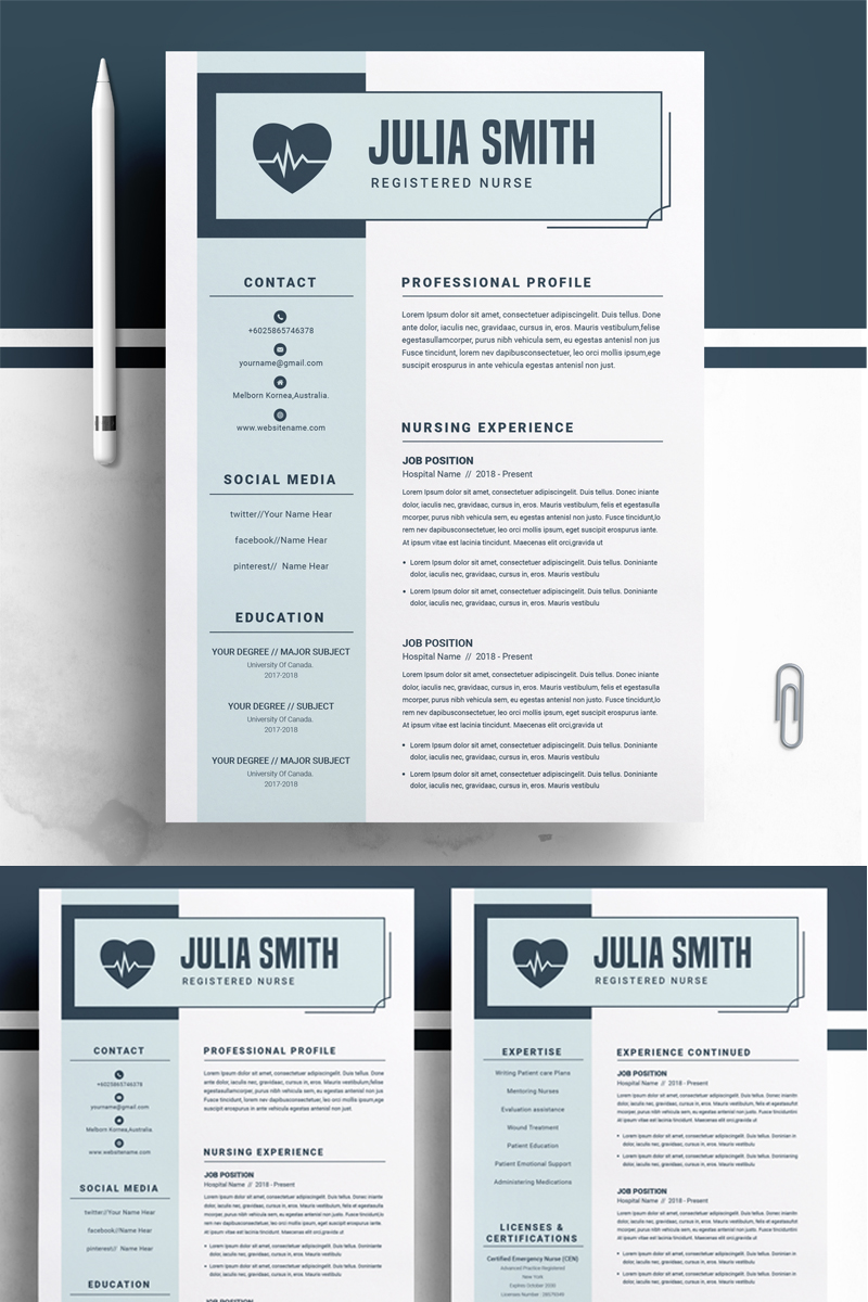 Download Резюме "Nurse Julia Smith Resume Template" / Nurse Julia Smith Resume Template - Резюме на тему графика resume template cv curriculum vitae modern clean word microsoft minimal professional mac pages photoshop psd illustrator eps 1 page 2
