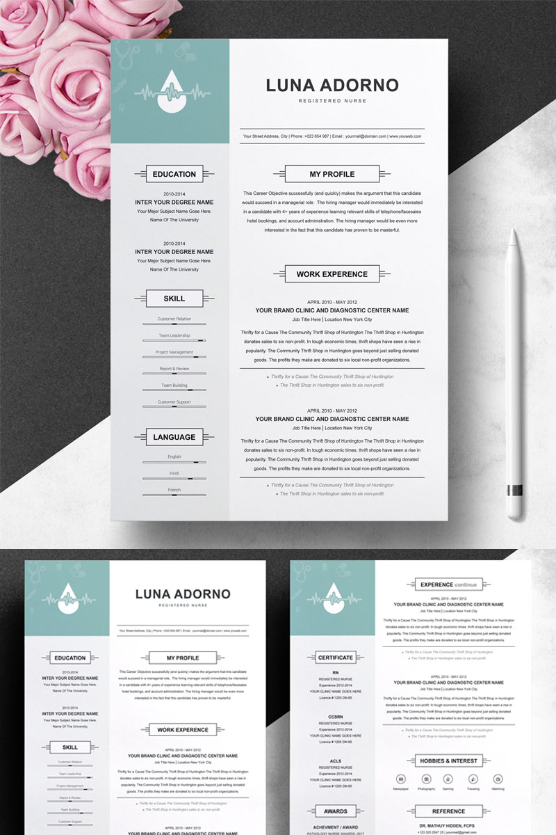 Download Резюме "Nurse Resume Template" / Nurse Resume Template - Резюме на тему графика creative resume modern cv template for word pages professional design clean nurse