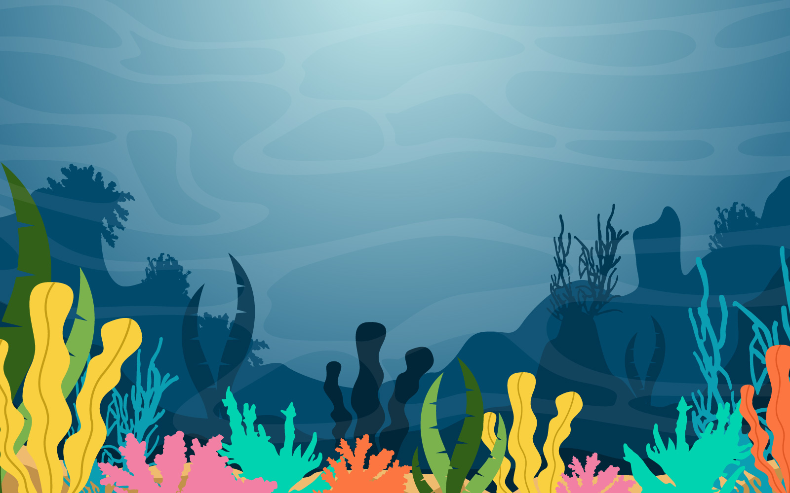 Download Иллюстрация "Ocean Coral Reef - Illustration" / Ocean Coral Reef - Illustration - Иллюстрация на тему графика underwater,sea,ocean,undersea,fish,coral,vector,illustration,design,animal,flora,fauna,deep,marine,reef,water,blue,cave,seascape,exotic