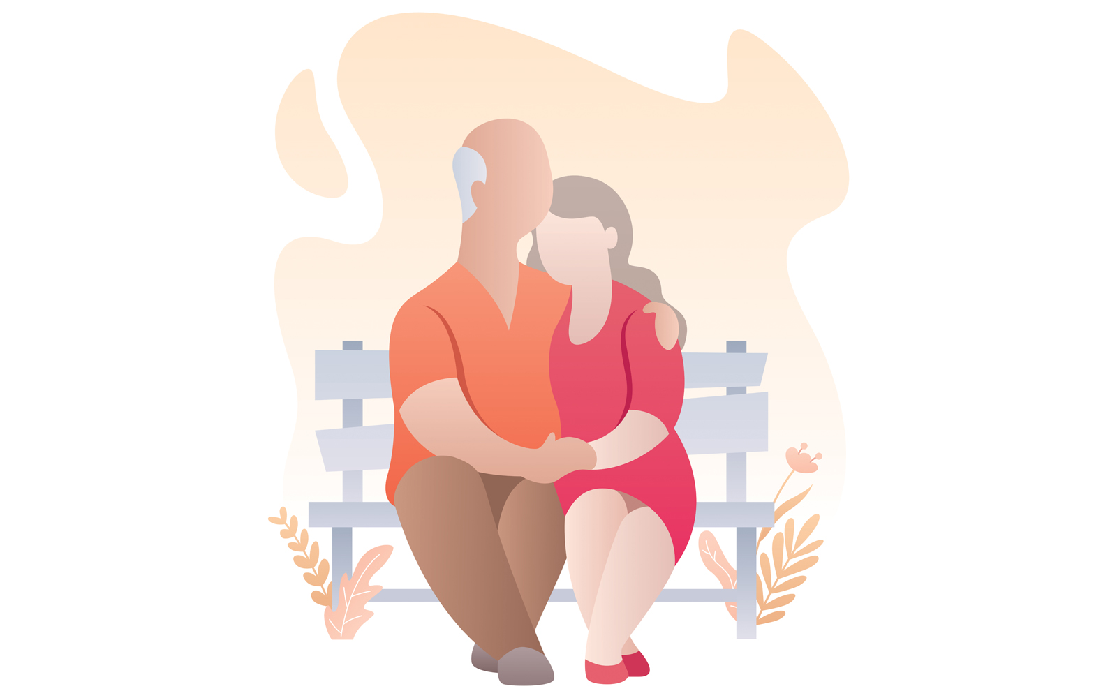 Download Иллюстрация "Old Couple 2 - Illustration" / Old Couple 2 - Illustration - Иллюстрация на тему графика old,couple,age,senior,adult,elderly,elder,people,family,hugging,dating,park,bench,sitting,loving,love,anniversary,aging,generation,grandma