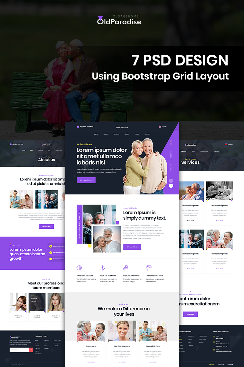 Download PSD шаблон "Old Paradise - Oldage Home PSD Template" / Old Paradise - Oldage Home PSD Template - PSD шаблон на тему уход за престарелыми old home theme template psd photoshop