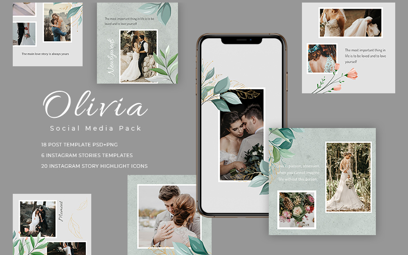 Download Шаблон для соцсетей "Olivia - Pack Social Media Template" / Olivia - Pack Social Media Template - Шаблон для соцсетей на тему графика template,templates,socialmedia,creativedesign,creative,instagramtemplates,instagram,templateinstagram,postinstagram,postdesign,fashion,wedding,holiday,celebration,love,family