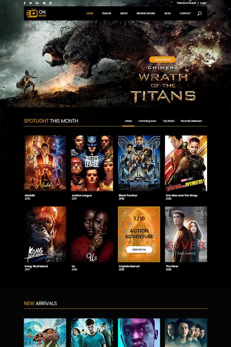 Download PSD шаблон "On Movie - Online Movie PSD Template" / On Movie - Online Movie PSD Template - PSD шаблон на тему кино movie theater theme template