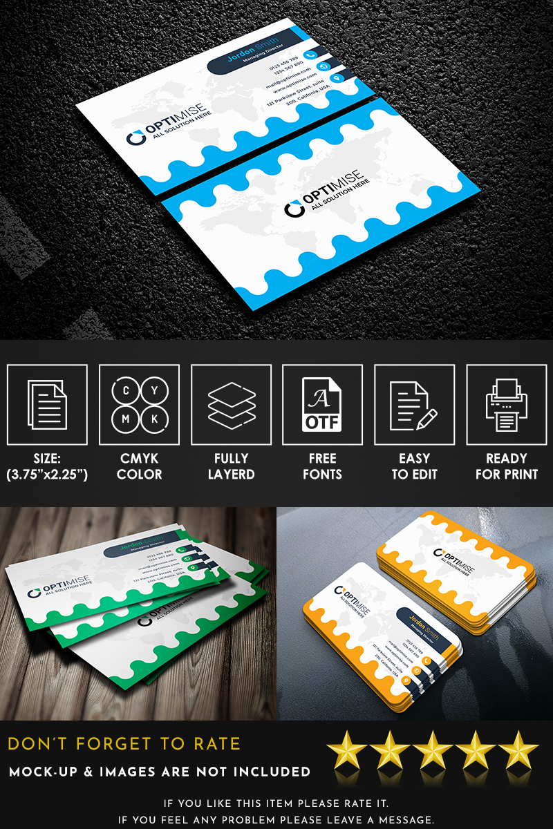 Download Фирменный стиль "Optimise Agency Business Card - Corporate Identity Template" / Optimise Agency Business Card - Corporate Identity Template - Фирменный стиль на тему графика business card visiting modern agency corporate clean creative white cyan green red yellow contact information bio company studio personal