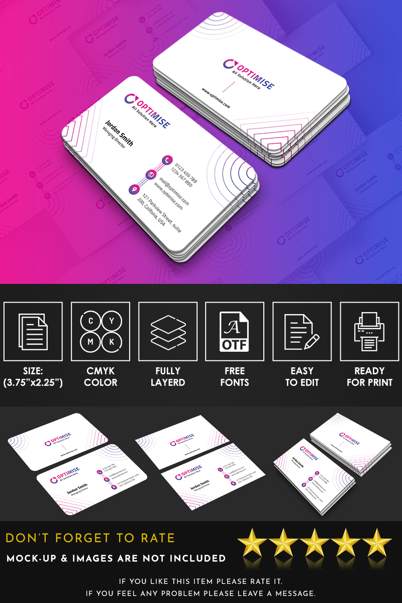 Download Фирменный стиль "Optimise Business Card - Corporate Identity Template" / Optimise Business Card - Corporate Identity Template - Фирменный стиль на тему графика business card visiting agency modern clean minimal corporate studio contact info white black personal identity