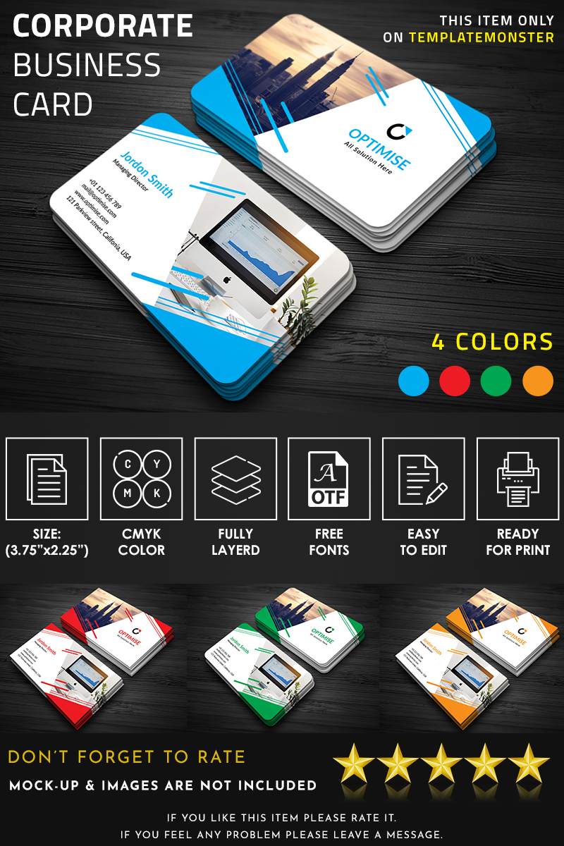 Download Фирменный стиль "Optimise Business Card - Corporate Identity Template" / Optimise Business Card - Corporate Identity Template - Фирменный стиль на тему графика print business visiting 300 dpi ready cmyk corporate agency studio personal company portfolio flyer broucher red blue cyan green orange