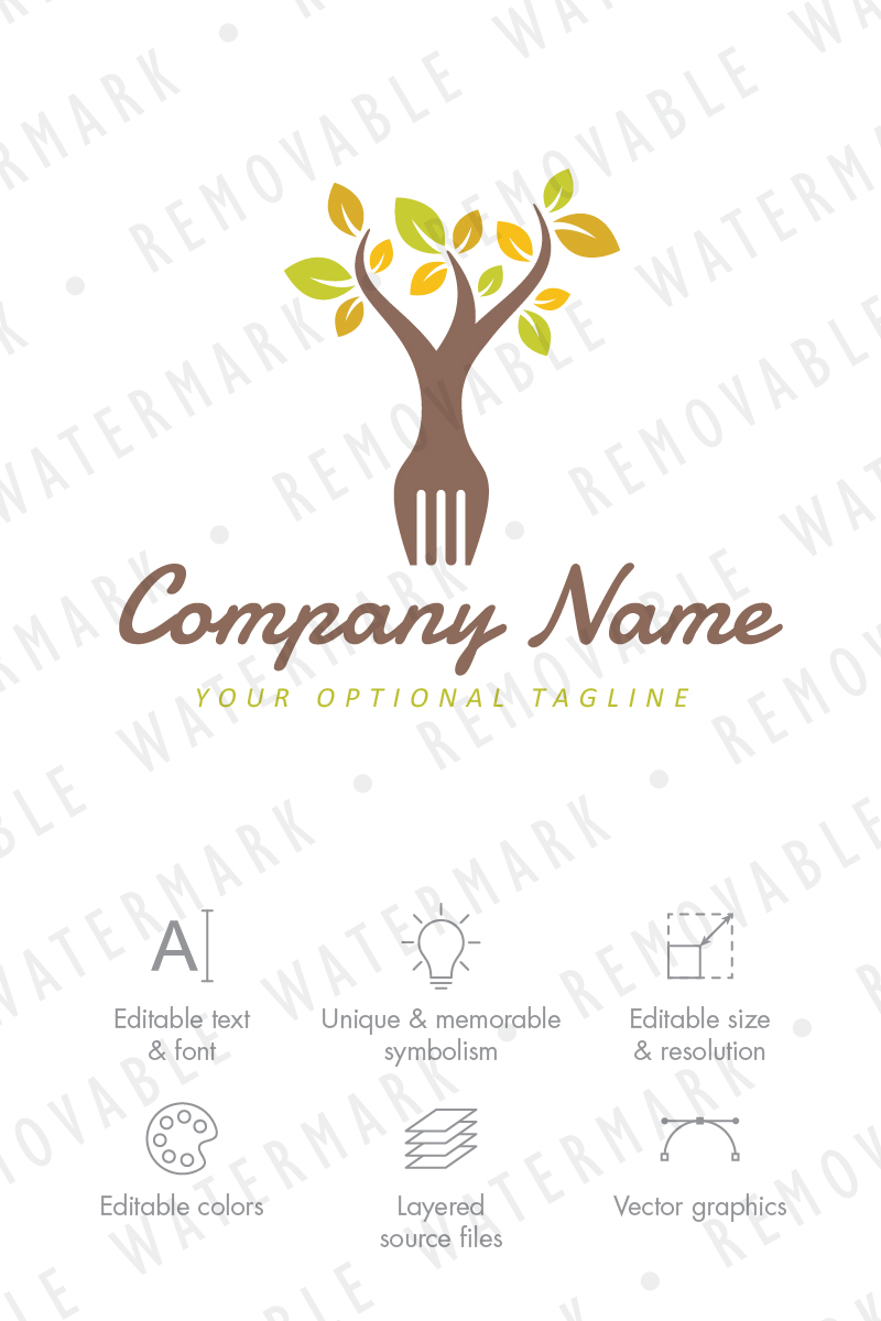 Download Шаблон логотипа "Organic Food Restaurant Logo Template" / Organic Food Restaurant Logo Template - Шаблон логотипа на тему графика tree,leaf,natural,food,organic,fork,eat,grow,dish,supplement,logo,design,template,restaurant,agriculture,vegetarian,vitamin,healthy,nutrition,gardening