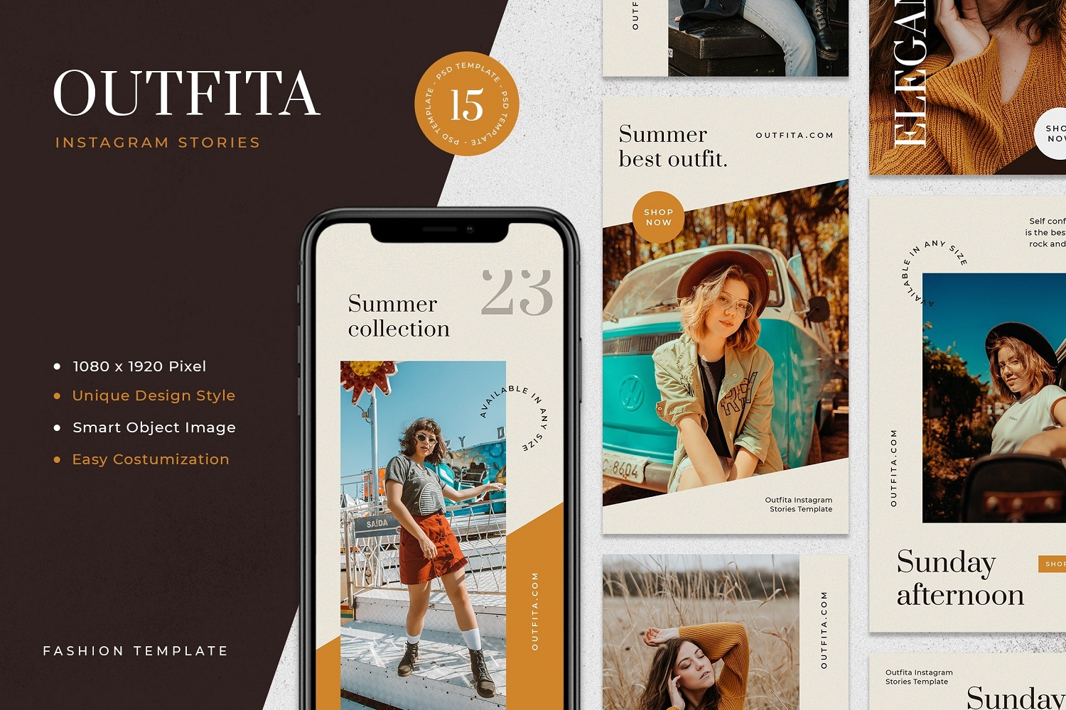 Download Шаблон для соцсетей "Outfita - Fashion Instagram Stories Template for Social Media" / Outfita - Fashion Instagram Stories Template for Social Media - Шаблон для соцсетей на тему графика creative,instagram,stories,instastory,fashion,feminime,stylish,lifestyle,layout,unique,minimal,whitespace,modern,story,elegant