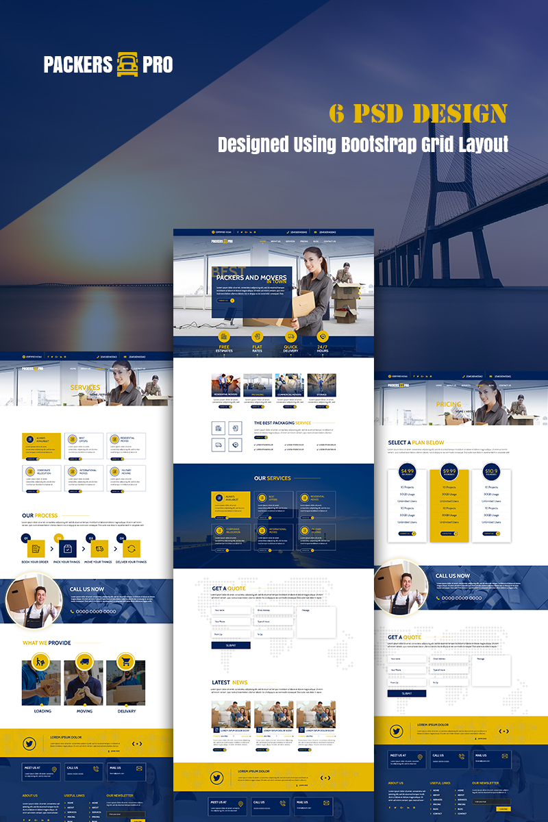 Download PSD шаблон "Packers Pro PSD Template" / Packers Pro PSD Template - PSD шаблон на тему грузоперевозка packers packer movers moving packing removal relocate relocation transport shipping logistic courier shifting delivery theme html responsive template