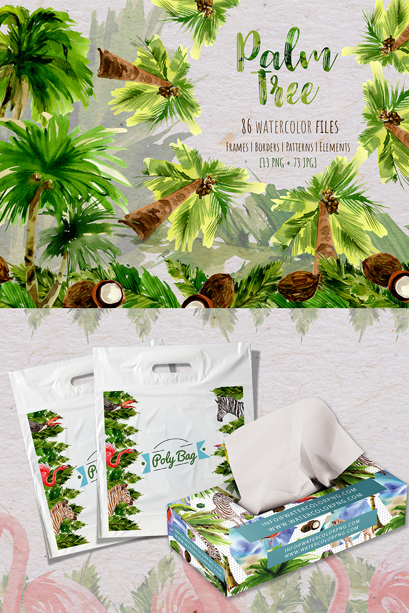 Download Иллюстрация "Palm Tree PNG Watercolor Set - Illustration" / Palm Tree PNG Watercolor Set - Illustration - Иллюстрация на тему графика watercolor illustration drawing background tropical tropic hawaii summer plant leaf leaves floral palm beach tree hawaiian succulent exotic jungle botanical