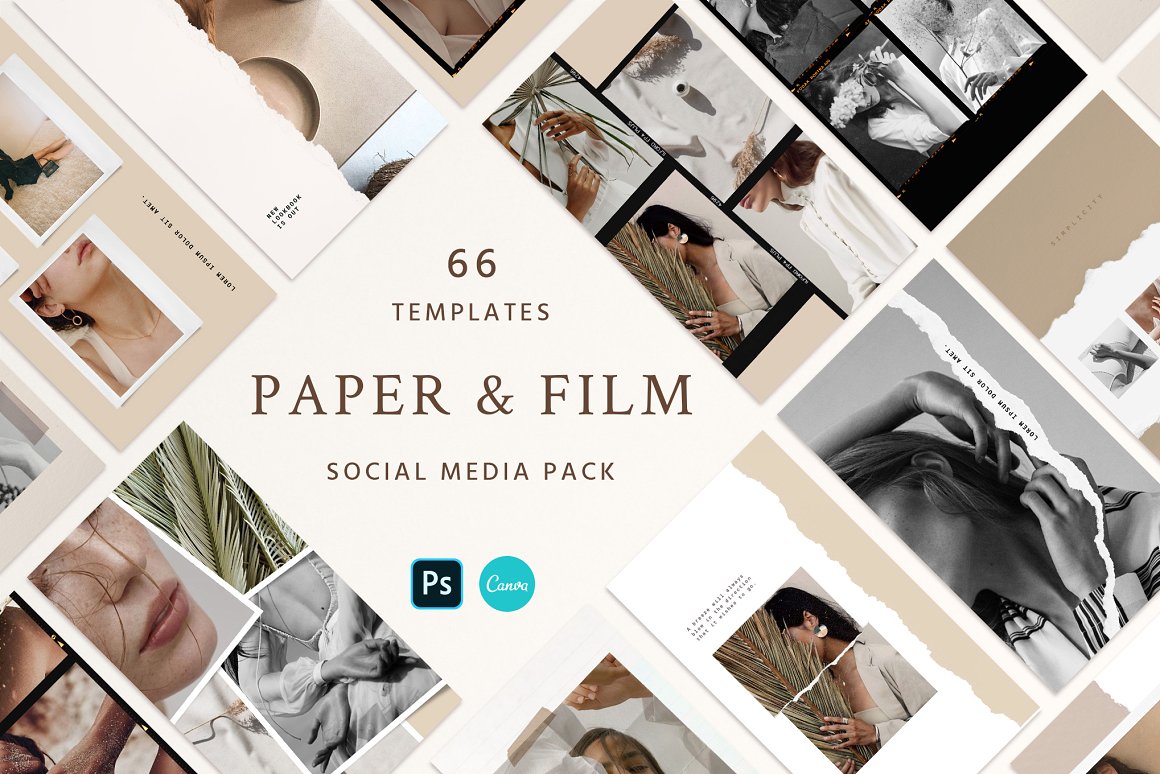 Download Шаблон для соцсетей "Paper and Film Kit Social Media Template" / Paper and Film Kit Social Media Template - Шаблон для соцсетей на тему графика social,paper,instagram,stories,post,story,socialkit,ripped,film,canva,minimal,promotional,slide,analog,frame