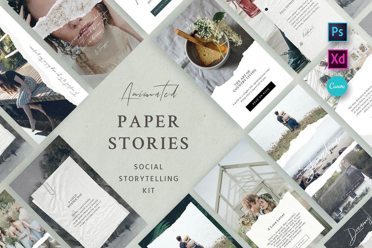 Download Шаблон для соцсетей "Paper Animated Stories - Kit Social Media Template" / Paper Animated Stories - Kit Social Media Template - Шаблон для соцсетей на тему графика paper,ripped,torn,social,kit,instagram,template,marketing,stories,animated,canva,adobe,xd,youtube,portfolio,sketchbook,poster,media,social_media,instagram_stories