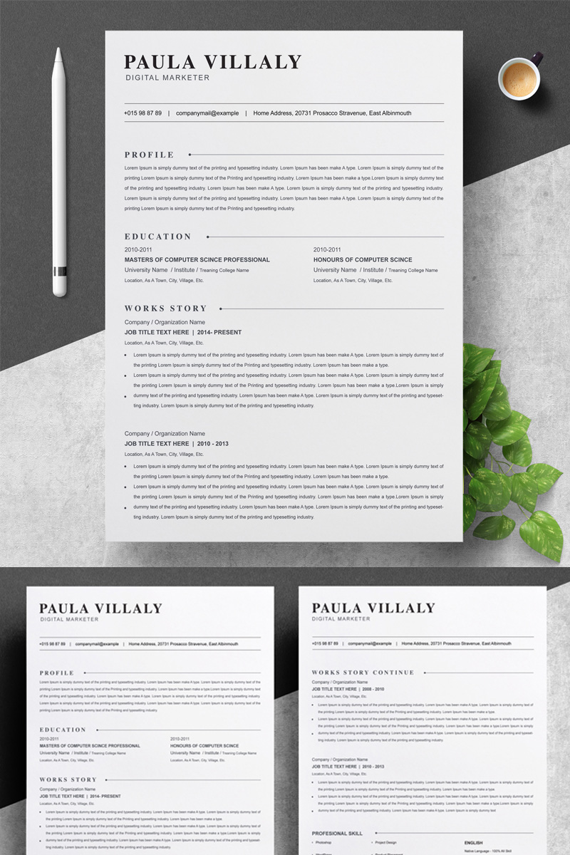 Download Резюме "Paula Resume Template" / Paula Resume Template - Резюме на тему графика 1 page resume 2 clean cv cover letter design template illustrator eps mac pages microsoft word modern photoshop psd professional