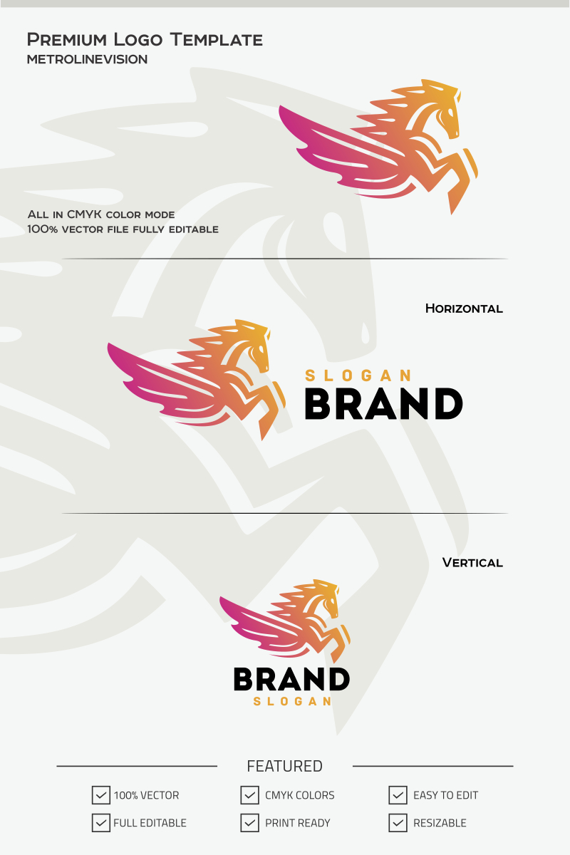 Download Шаблон логотипа "Pegasus Logo Template" / Pegasus Logo Template - Шаблон логотипа на тему графика animal logo auto sports automotive boutique hotel creature crests dream eagle fashion freedom horse infinity king luxury men outdoor pegasus