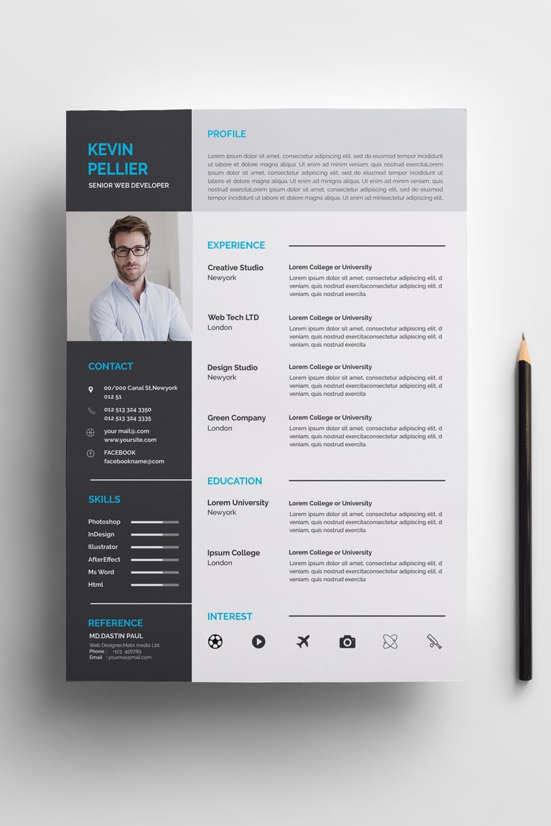 Download Резюме "Pellier Clean Resume Template" / Pellier Clean Resume Template - Резюме на тему графика a4 clean resume creative cv template designer elegant indesign infographic letter minimalist modern portfolio professional design minimal pages