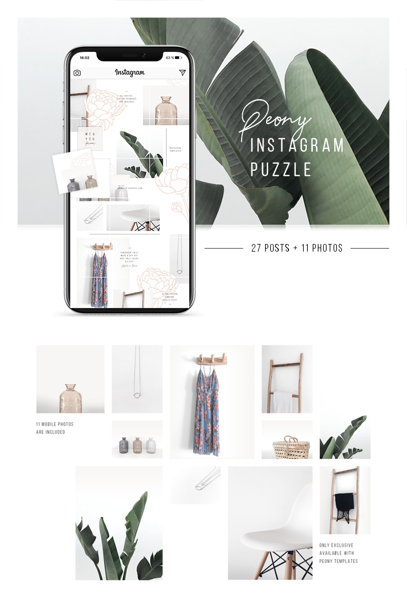 Download Шаблон для соцсетей "Peony Instagram Puzzle + 11 Photos Social Media Template" / Peony Instagram Puzzle + 11 Photos Social Media Template - Шаблон для соцсетей на тему графика puzzle instagram instapuzzle grid peony flower flowers floral female feminine template minimalist minimalism clean simple photos social media post lifestyle