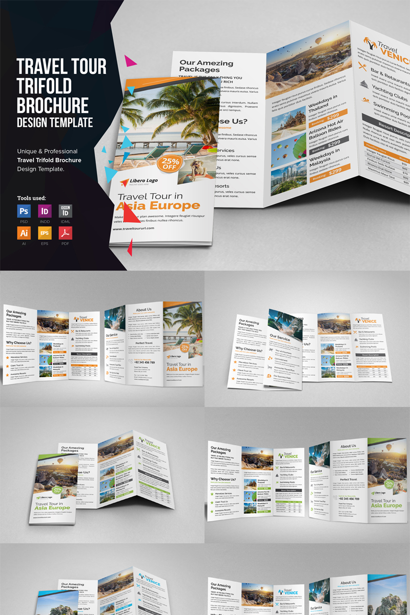 Download Фирменный стиль "Peso - Travel Trifold Brochure - Corporate Identity Template" / Peso - Travel Trifold Brochure - Corporate Identity Template - Фирменный стиль на тему графика travel resort brochure flyer leaflet trifold holiday tour agency vacation trip tourism a4 mockup package lounge villa spa massage hotel